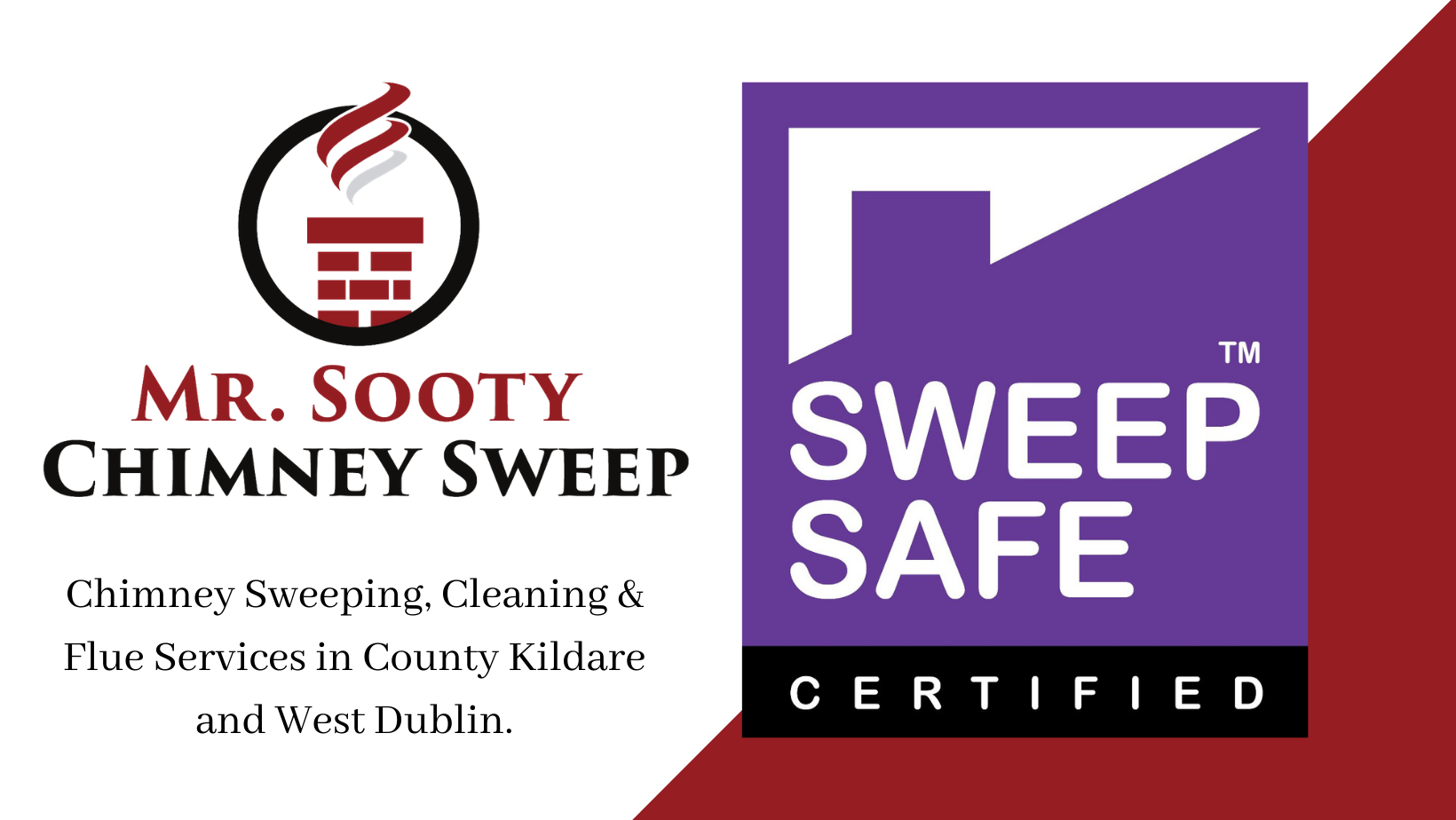 At Mr Sooty we provide professional sweeping, cleaning and other chimney and flue services to County Kildare and West Dublin. We are certified members of Sweep Safe and use the latest in power sweeping technology to ensure we deliver an efficient and expert service with no mess.